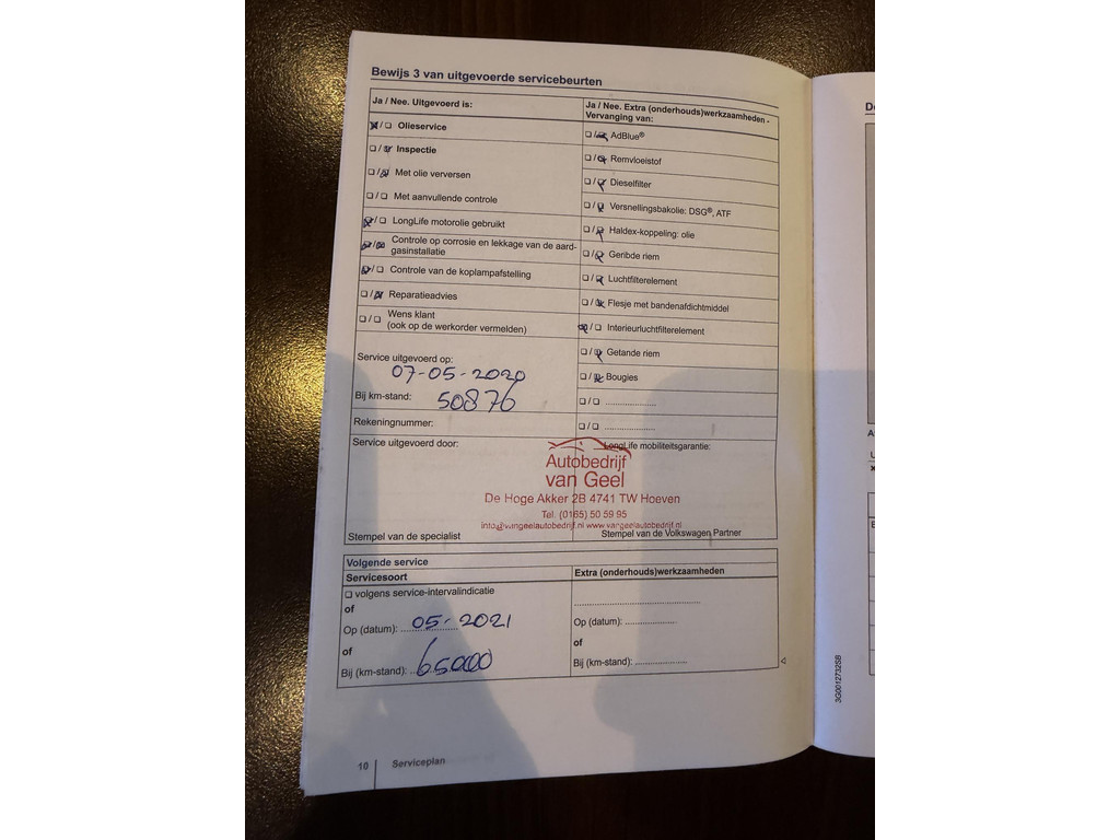 - Onderhoudsboekje aanwezig?